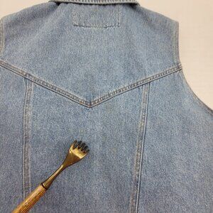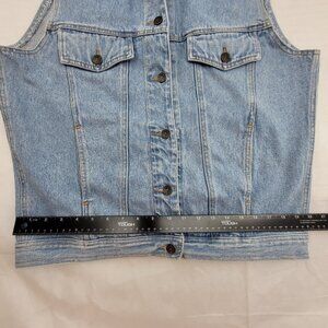 Vintage Denim Vest Womens L Blue Faded Button up w pockets by ABE Jeans