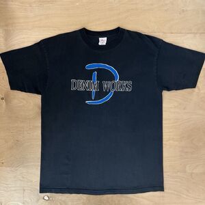 Vintage Denim Works Shirt XL Black Blue 90s Made in USA Jeans Americana Cowboy