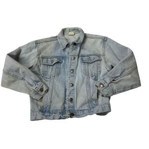 Ladies super cute light stonewash denim button down vintage jacket. Excellent vintage condition. Ladies size small.