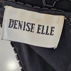 Vintage Denise Elle Black Silk Blouse Peacock Sequins Bling Holidays Party Top