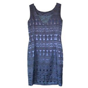 Vintage Denise Hajjar Boston Blue Jacquard Sleeveless Sheath Dress Size 6