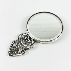 Vintage Denmark HANS JENSEN Silver Plated Hand Purse Mirror Village Tavern Scene