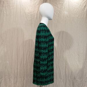 Vintage Dennis Goldsmith Oversized Green Silk Button Down Blouse W/ Women Silhouette Print