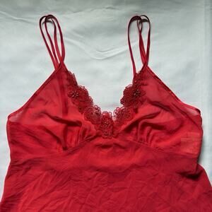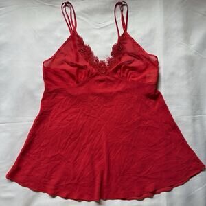 Vintage Dentelle Cherry Red Lace Lingerie Cami Top Women’s Large Romantic Sexy