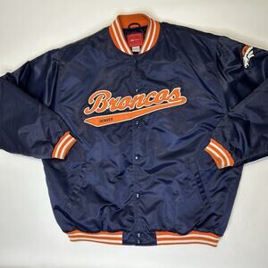 Show off your team pride with this vintage Denver Broncos NFL Reebok satin jacket. The blue and orange color combination is perfect for any game day outfit. Made for men in size 3XL, this jacket is a rare find for any die-hard Denver Broncos fan. The jacket features the team's logo prominently on the front and is made with high-quality materials to ensure durability and comfort. Perfect for football season or any occasion, this jacket is a must-have for any fan.