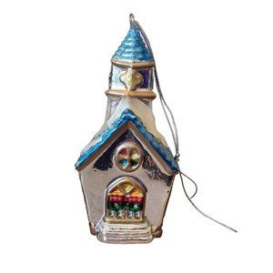 Vintage Department 56 Christmas Handblown Glass Church Ornament 8 Inches.