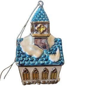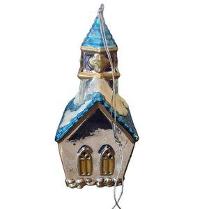 Vintage Department 56 Christmas Handblown Glass Church Ornament 8 Inches