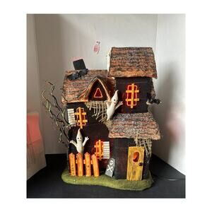 Vintage Department 56 Fiber Optic Haunted House Ghost Bats Lights Up Working