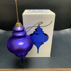 The Vintage Department 56 Satin Mercury Tear Drop Finial Ornament is a large, art deco style ornament measuring 9 inches in height. Made of cobalt glass with a blue and purple color, this hand-blown glass ornament from the 1990s features a Santa character design perfect for Christmas decor. This collectible ornament is a unique addition to any holiday ornament collection, showcasing vintage charm and craftsmanship.