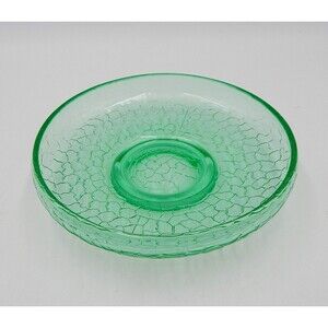 Vintage Depression Glass Bowl Green Uranium Pressed Crackle Pattern 6 1/2 Inch