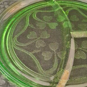 Vintage Depression Glass Hazel Atlas Green Cloverleaf 3 Part Grill Plate 10.25"