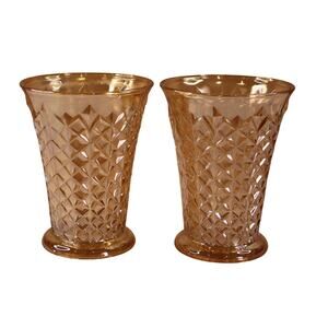 Vintage Depression Glass Pink/Orange Iridescent Diamond pattern Vases