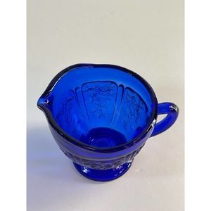 Vintage Depression Glass - Sharon Cabbage Rose Creamer in Cobalt Blue.