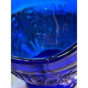Features Cabbage Rose Pattern in Gorgeous Cobalt Blue. This is vintage depression glass. Suggest hand wash only. Great vintage condition. It does have a few flea bites on the rim or from the mold, but makes a wonderful display piece. I took close up pictures and have them in the listing.