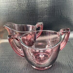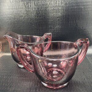 Vintage Depression Glass Sugar And Creamer Set 2 Glassware Amethyst Purple VTG