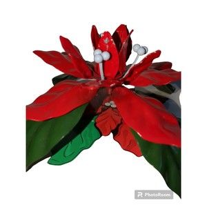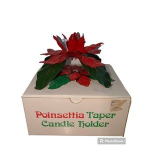 Add a touch of holiday charm to your d cor with this vintage Dept. 56 Poinsettia Taper Candle Holder. It features a beautiful metal design in a festive red color, perfect for Christmas. This item comes in its original box and is sure to make a wonderful addition to any collection.