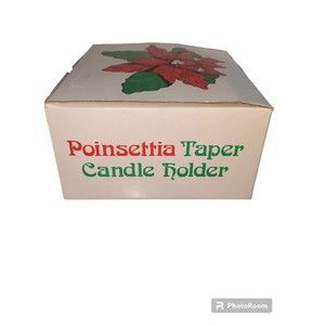 Vintage Dept 56 Poinsettia Taper Candle Holder In Original Box 7175-7