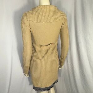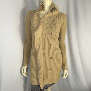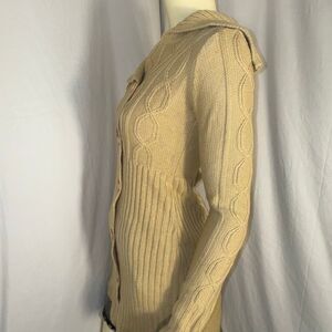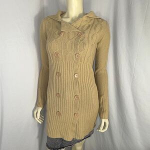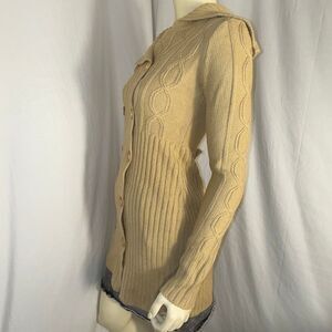 Vintage Derek Heart Camel Cable-Knit Sweater Coat | Longline Button-Up Cardigan