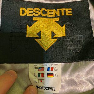 Vintage Descente Ski Jacket Coat Mens Size Large Teil Black Purple & Orange Colors. Multiple Pockets along the jacket. Small smudge in the back as well as the right wrist area of the jacket. Good Condition. Hoodie can be attached but it is missing. Great for the outdoors!