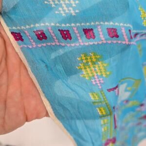 Vintage Desen India 100% Turkish Silk Scarf – Bright Blue Folk Geometric Pattern