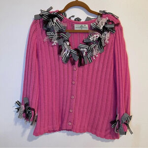 Vintage Design Options Phillip Jane Gordon bows trim cotton open knit pink M