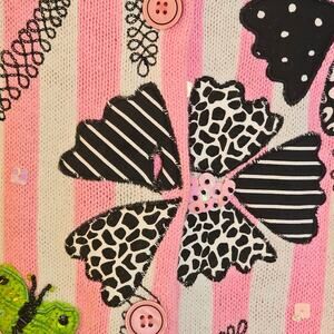 Tags: pink white black embroidery sequin stitching patches butterfly bug vintage 90s 80s grannycore fairycore whimsy retro philip jane gordon vibrant pattern stripe cardigan knit sweater