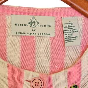 Vintage Design Options Pink & White Striped Knit Button Up Cardigan Sweater