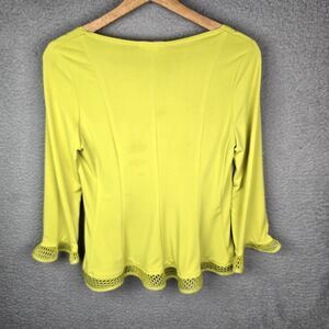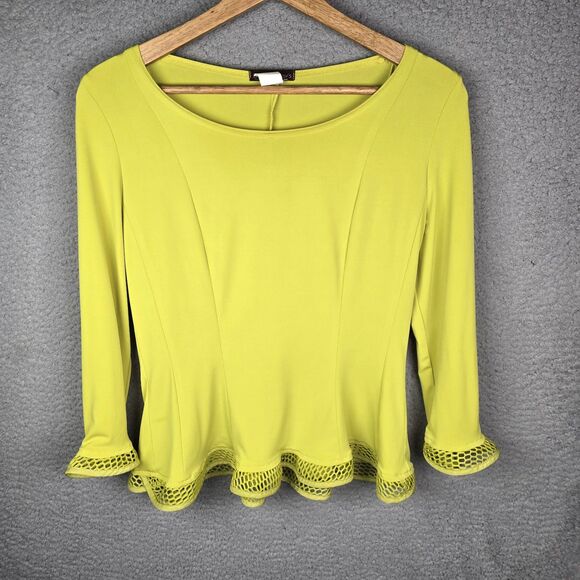 Vintage Design Todays Womens Top M Yellow Chartreuse Peplum Knit Flare Hem Retro
