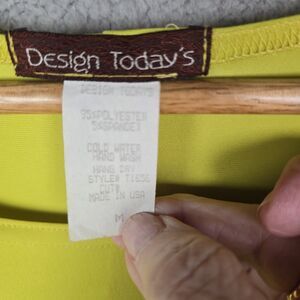 Step up your style with this vintage Design Today’s peplum top in a bold yellow-green / chartreuse shade. The original paper tag highlights its authentic vintage appeal, while the soft, stretchy knit and princess seams create a flattering, comfortable fit. Open-knit trim at the hem and cuffs adds a unique, feminine touch. This long sleeve pullover is in excellent condition, perfect for anyone who loves standout, retro-inspired pieces. Pair it with jeans or skirts for a chic, on-trend look that’s truly one of a kind.