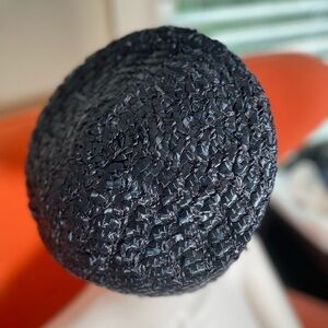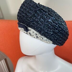 Vintage Designed by Laura Hat Sz S Weave Straw Hat Navy 50s/60s Lace Pillbox