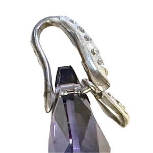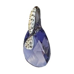Vintage Designer AU Sterling Silver Purple Topaz Teardrop Pendant Rhinestone