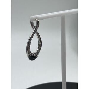 Long fancy dangle drop with FE CZ 925 china marked earrings for Far East Gem & Jewelry Co. Elegant sparkle!! These are very classic and beautiful!! Sterling silver base with pierced. Long and full about 1.6" These vintage earrings are a stunning addition to any jewelry collection. The twisted 3D design gives them a unique look, while the cubic zirconia stones add a touch of elegance. The earrings are made of sterling silver and feature leverback closures for added security.