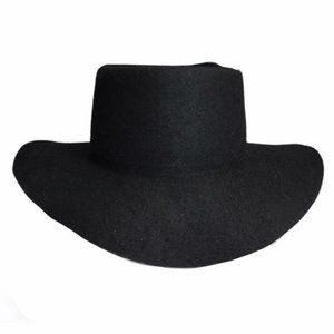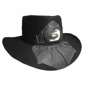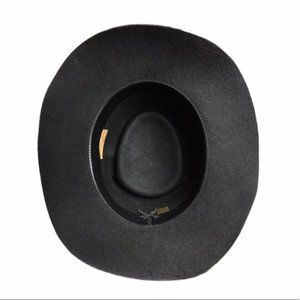 Vintage Designer Custom Made Deluxe Western Black 100% Wool Cowboy Hat with custom leather detailing and animal fur