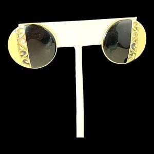 Vintage Designer Earrings Gold Tone Enamel 1980s Retro 3G