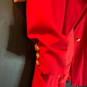 Vintage red designer blazer. Good condition. Gold bottoms on scrunch sleeve. Comes to hip. Italian 34. Can fit a small for oversized and medium for snug fit.