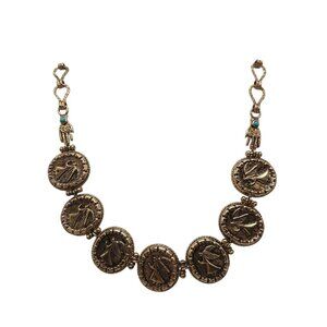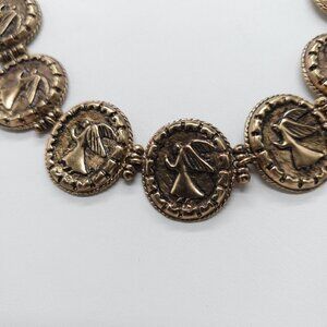 Vintage Designer Gold Tone Coin Necklace With Angel Motif Turquoise Accents