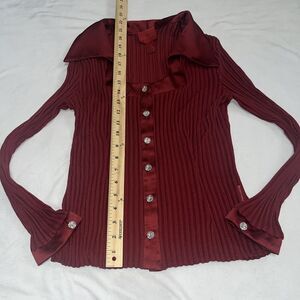 Vintage Designer JS Collections Ruby Red Vixen Blouse Sz 10 Crystal Buttons