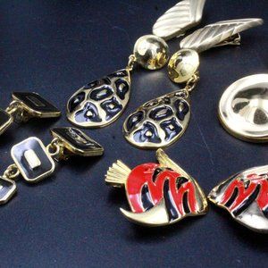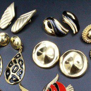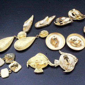 Indulge in the charm and versatility of this vintage earrings lot, crafted during the vibrant 1980s. This collection features a delightful assortment of seven pairs of earrings, each with its own distinctive character and style. Among the treasures are two designer pieces, including renowned brand Monet, showcasing their timeless craftsmanship. The remaining earrings are unmarked, allowing for a touch of mystery and surprise. All of these captivating earrings are in excellent condition, maintaining their original allure. With the convenience of clip-on clasps, they can be comfortably worn by anyone, regardless of piercing preference. From dainty to bold, the sizes of these earrings vary, offering endless possibilities to match your mood and outfit. Elevate your vintage jewelry collection with this diverse and enchanting assortment of 1980s earrings.