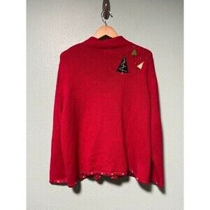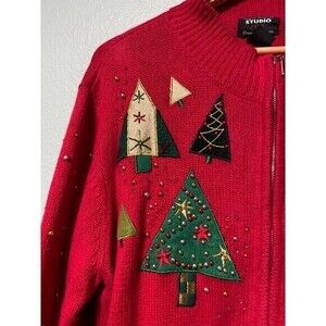 Vintage Designer Originals Studios Women's Red Christmas Tree Sweater Zip Up XL