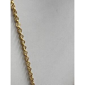 Accented with simulated rubies and sapphires. Pendant (with the bail) measures 2 inches tall and 1-1/4 inches wide. Twisted rope chain is 20 inches long with a 2-inch extender chain and a strong lobster claw clasp. In Like New Condition and signed.
