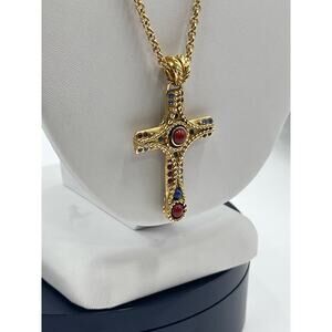 This stunning high quality necklace is Gold plated, set with stunning Swarovski gems and coral cabochons This cross is one of the harder to find. stamped on the back of the cross.
