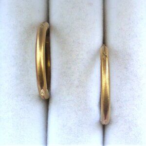 Beautiful Designer signed solid 14K Yellow Hollow Gold Diamond Cut Hoop Pierced Earrings about 3.7 grams (marked "AK 14K" and acid tested). They are in great vintage used pre-owned condition and measure about 1 1/16" in length (with post part) by about 3.25mm in width.