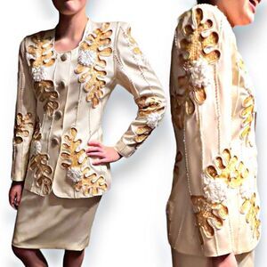 Vintage Designer MAX NUGUS 2 Piece Sequins Beaded Handmade Couture Jacket/Skirt