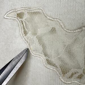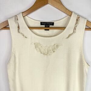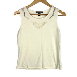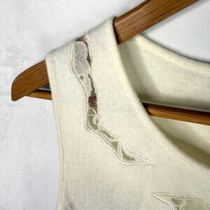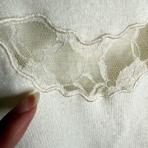 Vintage Designers Originals super soft Luxelon acrylic tank top in off white/cream color and lace cutout details. Size petite small. One super tiny spot on the lace.