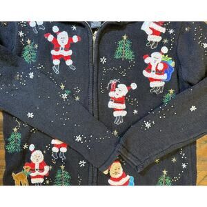 Vintage Designers Originals Ho Ho Ho Full Zip Christmas Sweater Petite Medium
