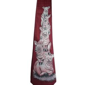 Vintage Designs By A. Rogers Men's Red Playful Pigs Neck Tie