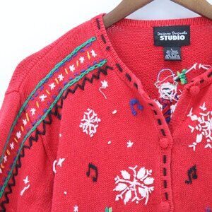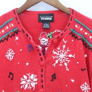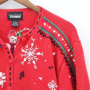 Vintage Designs Originals Studio Christmas Cardigan Embroidered Ramie L 90s