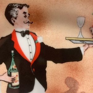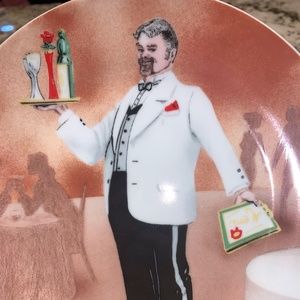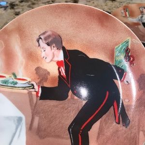 "At Your Service" vintage Dessert Plates • Set of four • China (not plastic or melamine) • Gorgeous watercolor-style art of waiters, maitre'd, servers, sommelier, etc. • 4 dessert plates in a matching round box • Perfect gift or great for entertaining • Never used • Like new • Make an offer • I am currently downsizing and I will entertain all reasonable offers • Thanks for your interest!