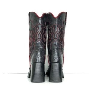 Vintage Destroy Snake Print Square Toe Cowgirl Platform Boots Women’s 40 Shoes