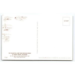Printed by H.S. Crocker Co., Inc. in Chicago, this Mirro-Krome card combines quality lithographic printing with engaging visuals, making it a desirable collectible for enthusiasts of coastal Americana and Delaware history. The card measures the standard 5.5 x 3.5 inches, making it perfect for display or inclusion in postcard collections dedicated to beaches, travel, and vintage Americana.